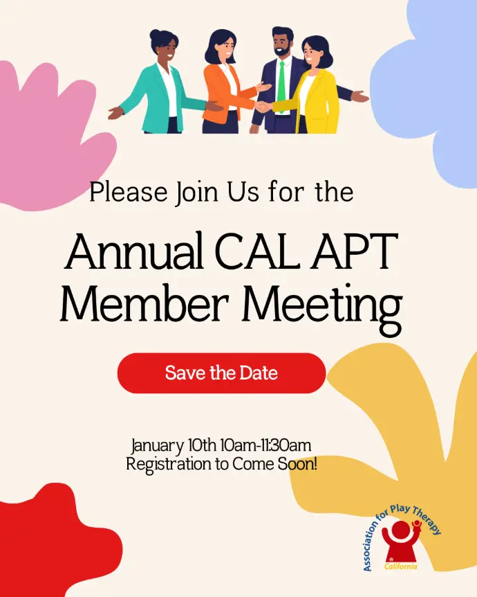 If you're interested in specific topics, have ideas and want to get involved, let us know! Have ideas for events, and ways to share about Play Therapy throughout California? Let's brainstorm together.